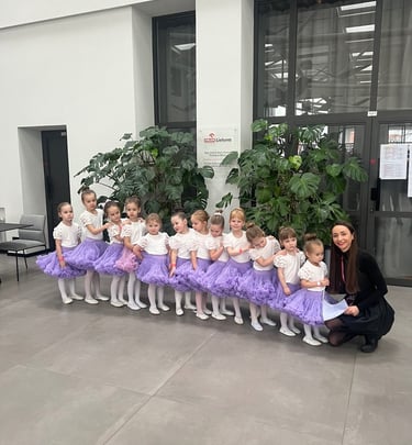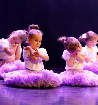 Mažiausiųjų grupė (iki 6 metų) Pirmieji žingsneliai šokio pasaulyje per žaidimą, muziką ir judesio džiaugsmą.