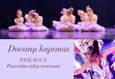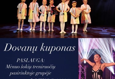 Taip pat galite įsigyti dovanų kuponą šokių pamokoms, kartu su eiliuota mokytojos Ievos Gadišauskienės eilėraščių knygute.