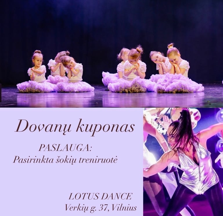 Lotus dance šokių studija siūlo smagią, kūrybišką ir draugišką aplinką vaikams, norintiems šokti ir atrasti judesio džiaugsmą. Mūsų studijoje vaikai gali ne tik išmokti įvairių šokių stilių, tačiau ir lavinti savo kūrybiškumą, pasitikėjimą savimi bei susirasti naujų draugų. Siūlome platų šokių kursų pasirinkimą, pritaikytą skirtingo amžiaus ir gebėjimų vaikams, todėl kiekvienas gali rasti tai, kas jiems labiausiai patinka ir įdomu. Mokytoja yra pasiruošusi padėti kiekvienam šokėjui pasiekti savo tikslus ir mėgautis šokiu, kuris gali tapti vaikų gyvenimo aistra.
